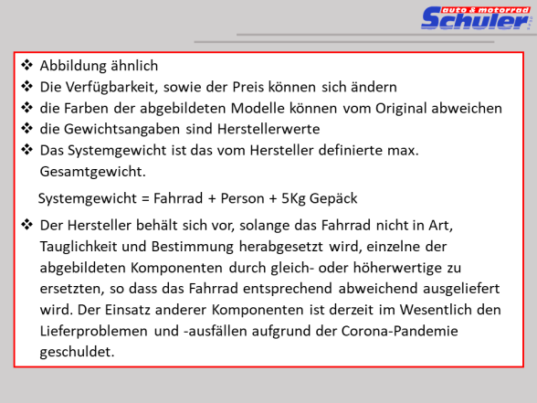 Der Verkauf der Fahrräder ist leider nur lokal im Geschäft möglich.